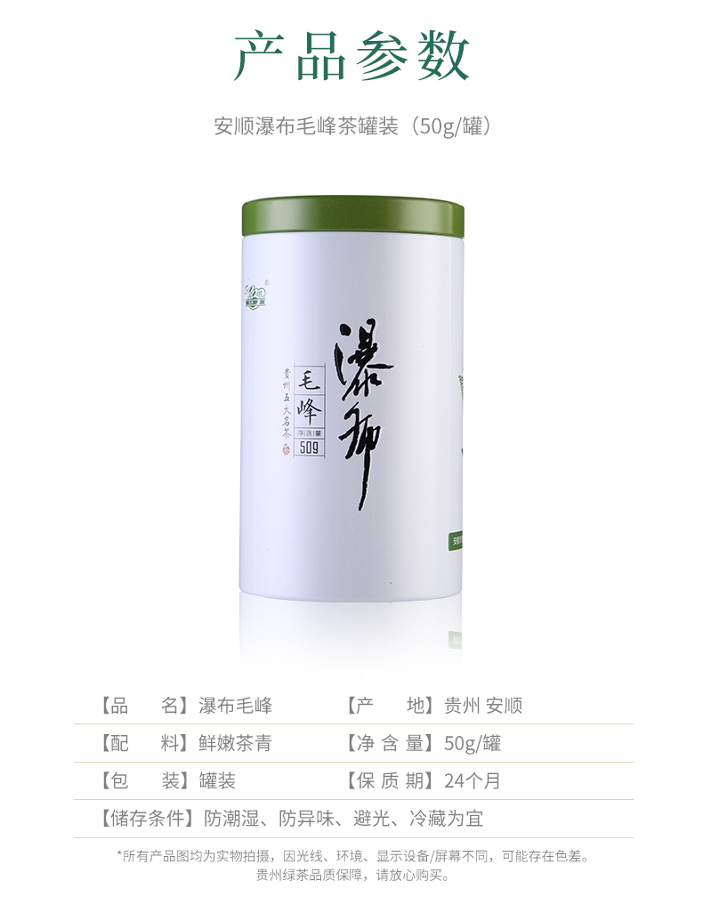 貴州綠茶 安順瀑布茶 辦公茶2021新茶 特級毛峰50克罐裝