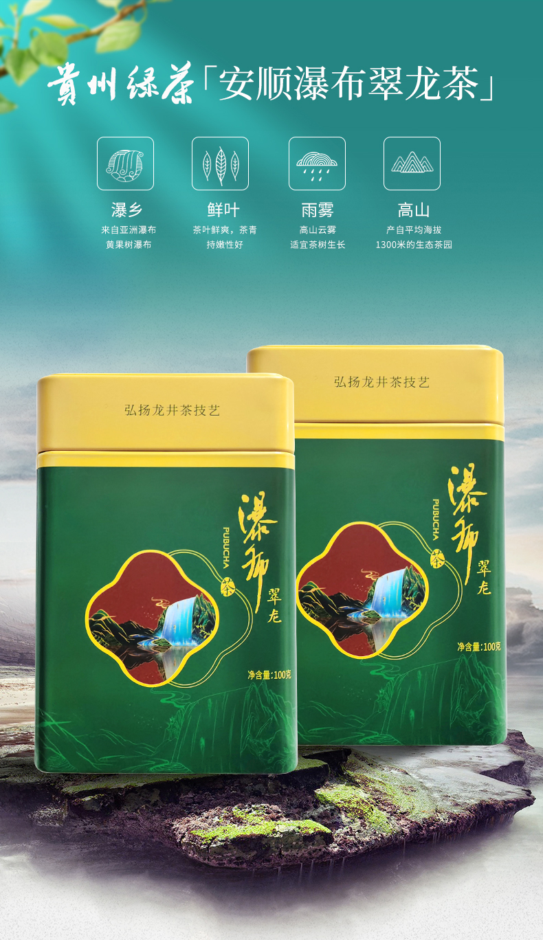 瀑布茶品牌是安順市人民政府主打茶葉品牌,省級重點打造區域公共品牌,屬貴州五大名茶,先后獲得獲“中國農產品區域公用品牌”、“貴州省著名商標”“貴州省名牌產品”等榮譽稱號近年來,在各級部門大力推動下,瀑布茶品牌不斷發展壯大。截止目前,現有瀑布茶品牌加盟企業23家,輻射茶園面積200000余畝其中綠色食品認證茶園基地面積7000余畝,有機食品認證基地面積2500畝擁有“瀑布毛峰”、“瀑布翠芽”“瀑布紅茶”、“瀑布翠龍”等產品,多次獲得“中綠杯”、“中茶杯”、“華茗杯”大獎;分別榮獲14屆中國國際農產品交易會金獎18屆中國綠色食品博覽會金獎“黃山杯”首屆全國傳統名茶產品質量特別金獎、安順十大旅游商品等殊榮及稱號。