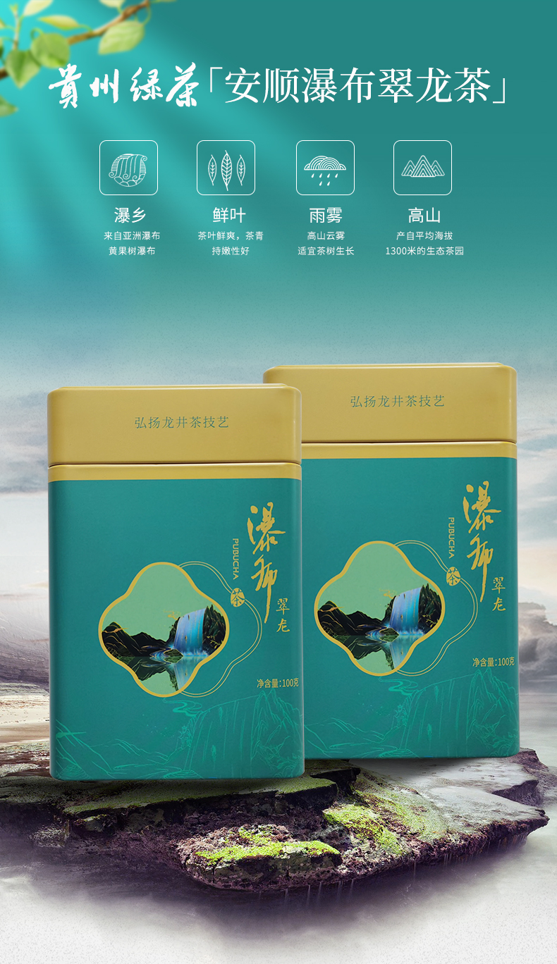 瀑布茶品牌是安順市人民政府主打茶葉品牌,省級重點打造區域公共品牌,屬貴州五大名茶,先后獲得獲“中國農產品區域公用品牌”、“貴州省著名商標”“貴州省名牌產品”等榮譽稱號近年來,在各級部門大力推動下,瀑布茶品牌不斷發展壯大。截止目前,現有瀑布茶品牌加盟企業23家,輻射茶園面積200000余畝,其中綠色食品認證茶園基地面積7000余畝,有機食品認證基地面積2500畝擁有“瀑布毛峰”、“瀑布翠芽”、“瀑布紅茶”、“瀑布翠龍”等產品,多次獲得“中綠杯”、“中茶杯”、“華茗杯”大獎;分別榮獲14屆中國國際農產品交易會金獎、18屆中國綠色食品博覽會金獎、“黃山杯”首屆全國傳統名茶產品質量特別金獎、安順十大旅游商品等殊榮及稱號。