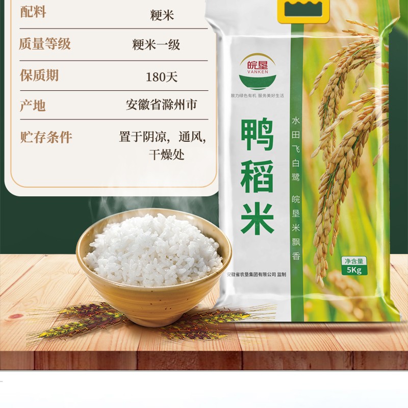 皖墾鴨稻米大米5kg新米圓粒珍珠米粳米生態鴨田稻米真空包裝