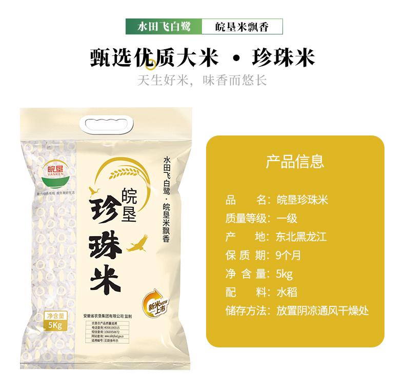 皖墾 珍珠米5kg黑龍江特產真空包裝東北大米香米粳米