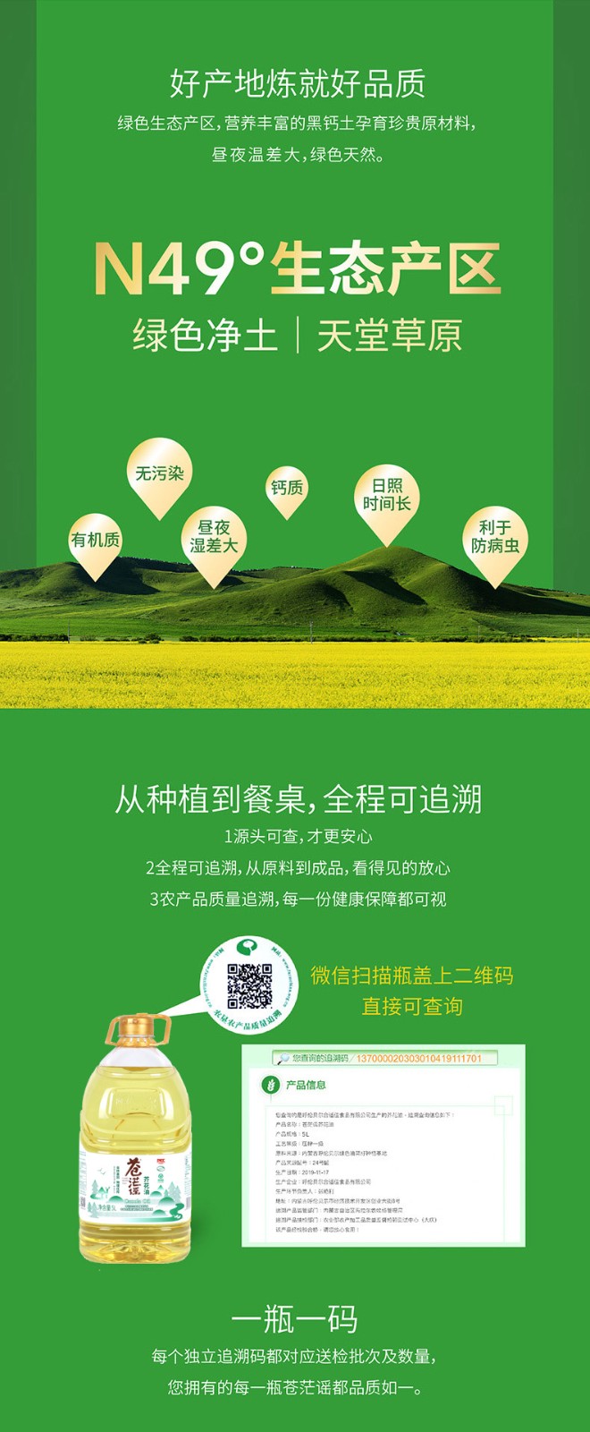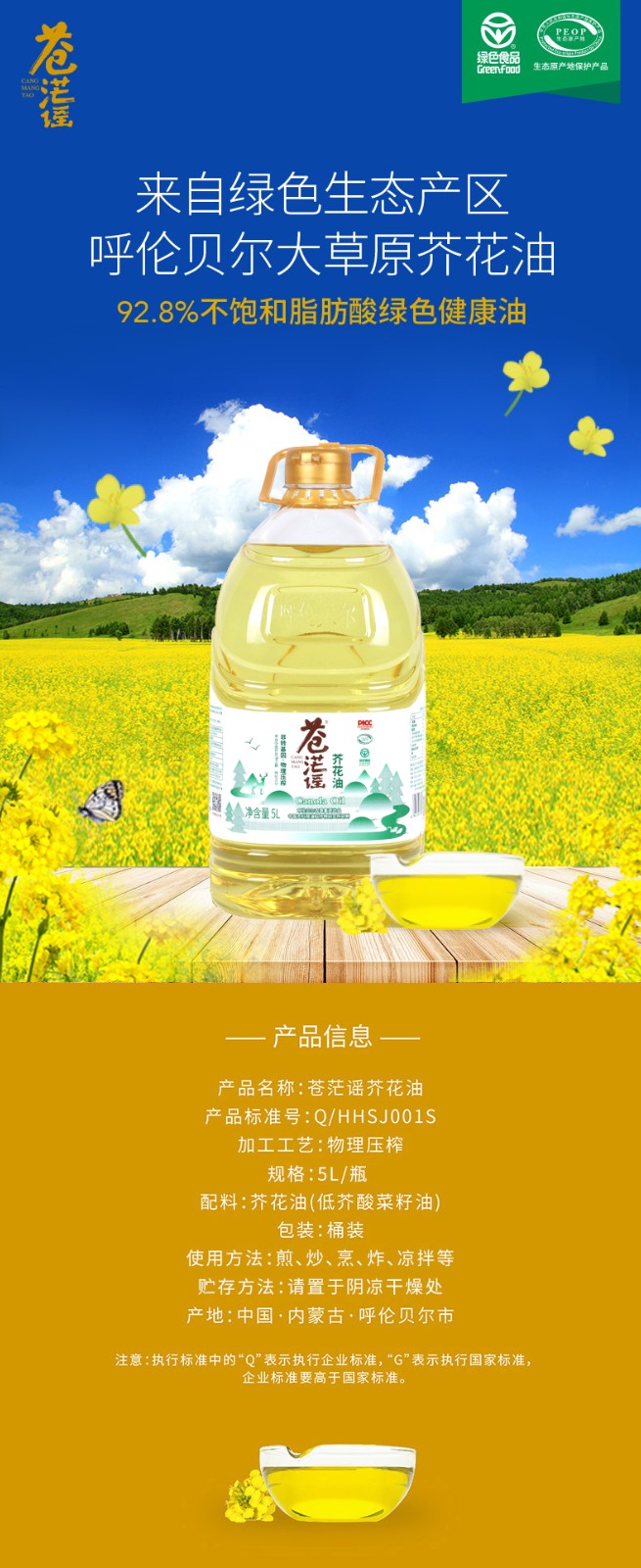 呼倫貝爾農(nóng)墾出品蒼茫謠芥花油非轉(zhuǎn)基因純正食用油5L大桶低油煙