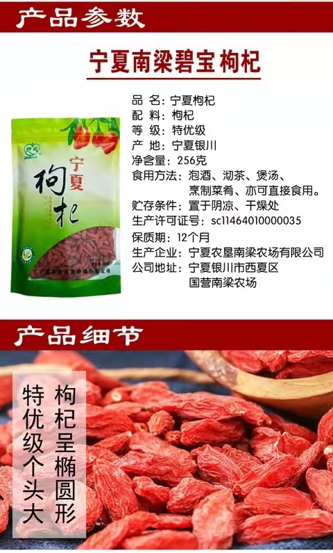 寧夏農(nóng)墾南梁農(nóng)場有限公司【原寧夏枸杞企業(yè)(集團(tuán))公司】成立于1992年8月,位于銀川市西夏區(qū)南梁農(nóng)場,是寧夏農(nóng)墾集團(tuán)有限公司所屬的枸杞種植、加工、銷售為一體的專業(yè)化公司。已有50多年的枸杞栽培歷史,所產(chǎn)枸杞素以粒大、肉厚、籽少、味甜、藥效高而居寧夏枸杞之冠。